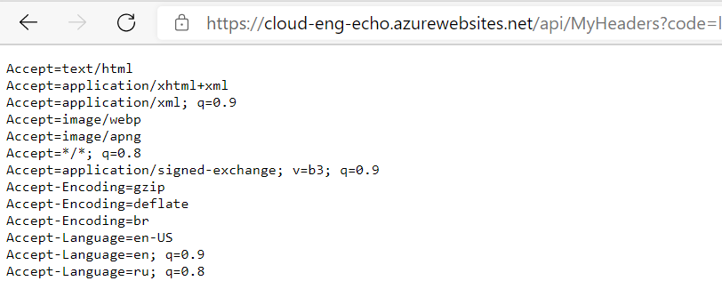 For the demo, I’m going to use this super simple Azure Function that replies to your GET request with a list of headers supplied.